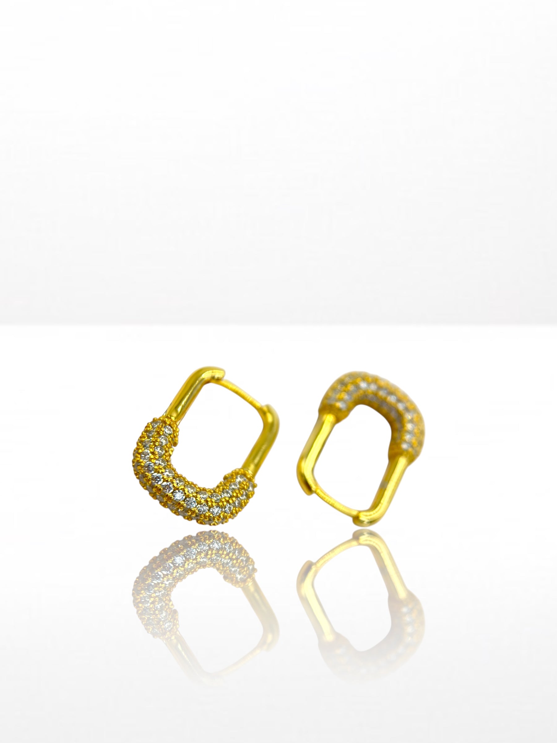 Elegantný šperk s hranatým dizajnom a jemnými kamienkami v spodnej časti, ktorý pôsobí moderne a nadčasovo. Decentný detail dodáva šperku jedinečný charakter, vďaka čomu je ideálny na každodenné nosenie, no krásne vynikne aj pri špeciálnych príležitostiach.