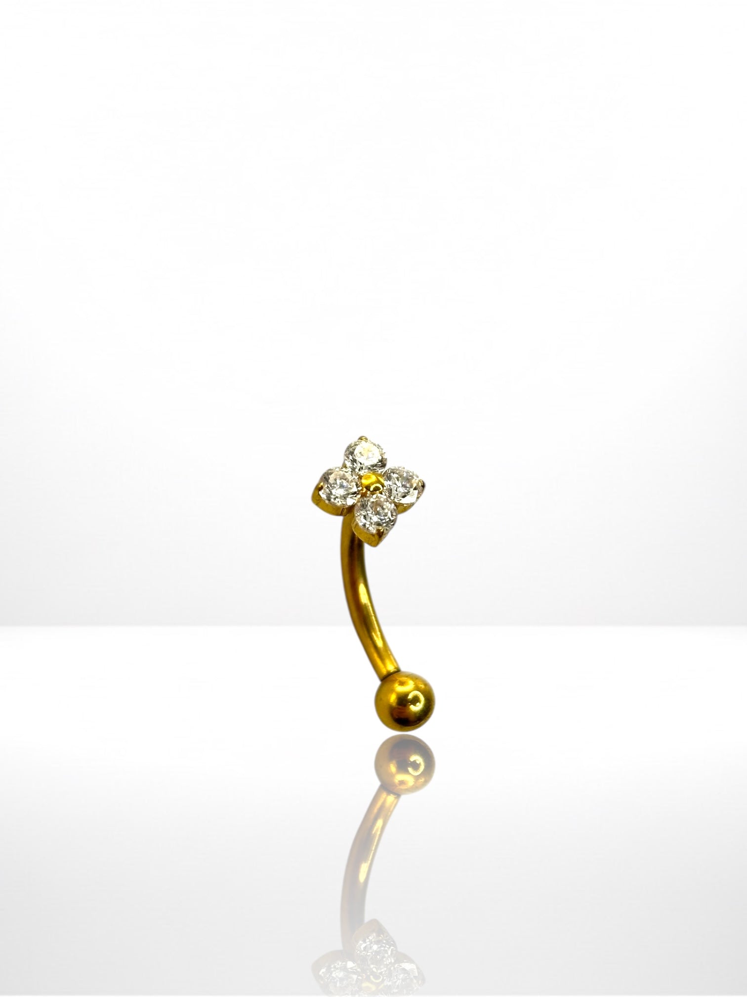 Štýlový titánový piercing typu banán zdobený kvalitnými čírymi zirkónmi, ktoré dodávajú šperku výrazný lesk.