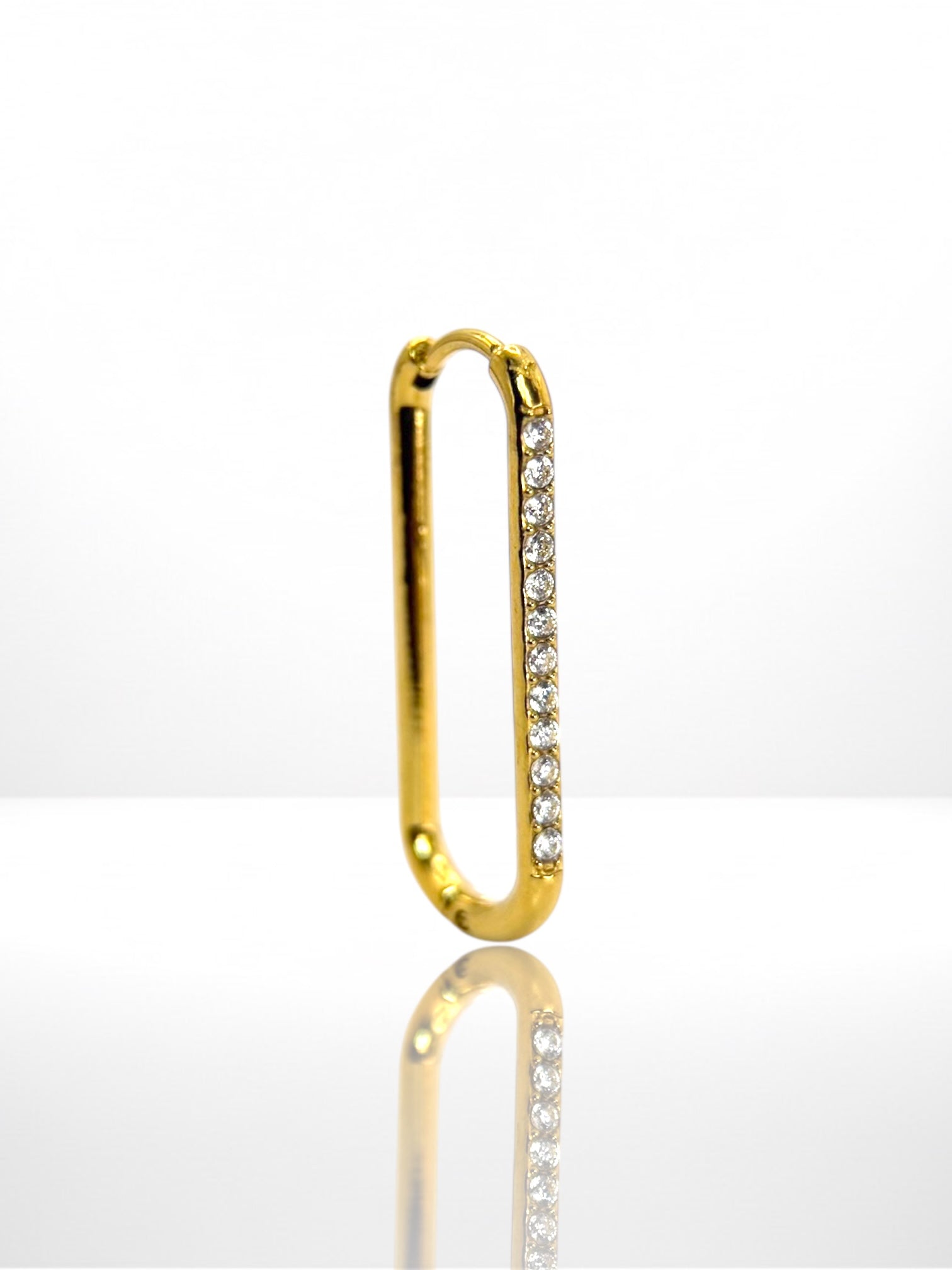 Elegantné náušnice z chirurgickej ocele v tvare obdĺžnika, s hladkým a čistým dizajnom s jemným radom kamienkov, v zlatom veľkosť Large a v striebornom prevedení v oboch veľkostiach. Ich nadčasový vzhľad pôsobí jemne a sofistikovane, vďaka čomu sú ideálne na každodenné nosenie, no krásne doplnia aj outfit na výnimočné príležitosti.