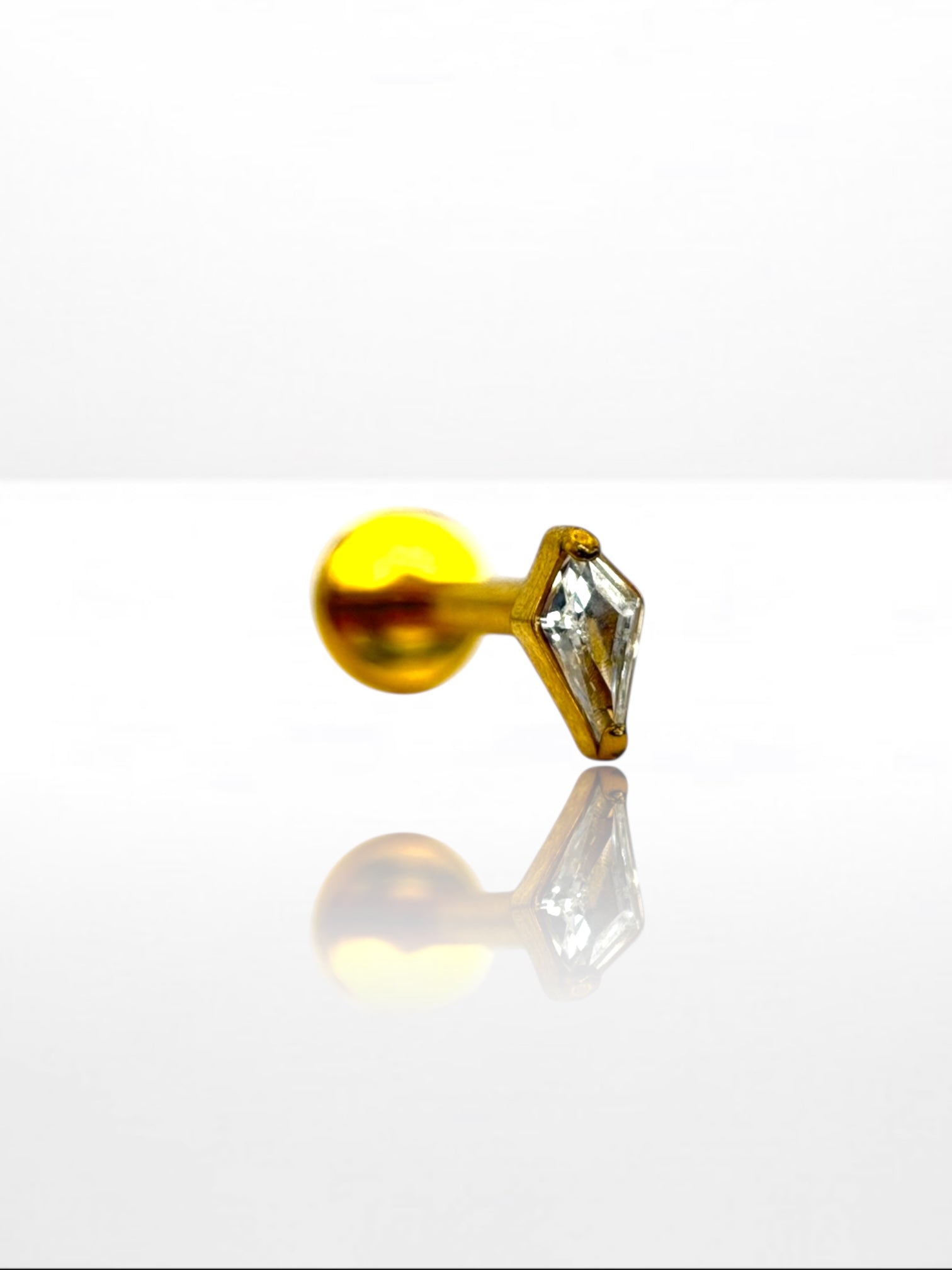 Štýlová titanová labreta so zirkónom v tvare kosoštvorca.